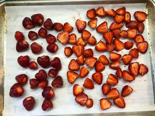 Drying is the easiest way to preserve strawberries. Here’s a resource. The results can be used to munch on by themselves or add to a trail mix or your morning oatmeal. Just wash the strawberries gently in cool water, cut off the green tops and slice in half. Place skin side down on a dehydrator rack so the pieces don’t touch each other. Set the dryer’s temperature to around 135 degrees and let it run for at least 12 hours. An electric dehydrator makes a low hum so, I sometimes put the dehydrator outside while it’s working. Small electric dehydrators are inexpensive and available in a variety of styles at many retail outlets or online.