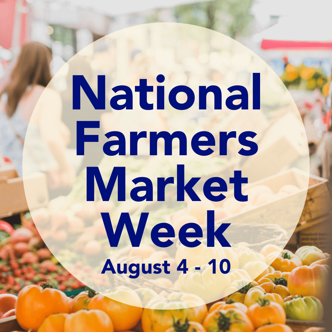 Join us in celebrating National Farmers Market Week from August 4th to 10th! This week highlights the vital role farmers markets play in our nation’s food system. With fun events, programs, and more, the week helps to boost market attendance and visibility as well as showcase the value markets bring to their communities.
