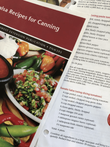 Proportions in the salsa recipes have been tested for safety. Some substitutions are allowed. A spicier pepper can be used just as long as it is the same amount of peppers called for in the recipe you are using. You can always add other favorite ingredients after you open a jar. More details are available in Salsa Recipes for Canning PNW395. I’ve found this publication to be very helpful. It’s full of easy to understand information. The most recent version of this publication has some new fruit salsa recipes that are very good.
