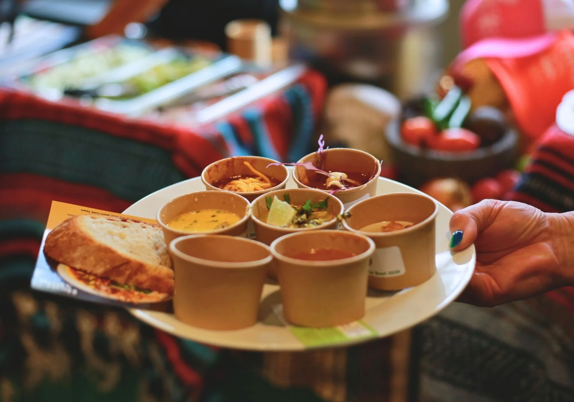 Soup is balanced on a plate at the 2026 SOUPer Bowl