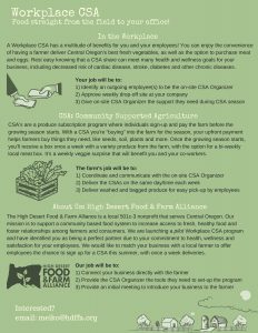 HDFFA paired local farmers with busy office employees to provide fresh local food at the convenience of their workplace. Employees sign-up for a Community Supported Agriculture (CSA) share through their employer and during the summer they receive fresh vegetables delivered each week.