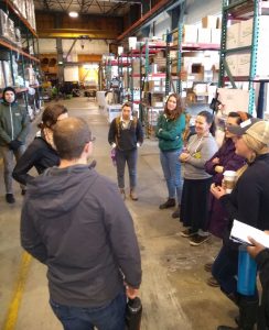 After an early-morning start and good weather on the drive to Portland, we arrived at The Redd on Salmon Street. There, 12 HDFFA partners and interested food businesses got a fantastic tour of this regional food hub. The Redd serves as a collection, preparation, retail or wholesale sales, and distribution center for all kinds of products – from frozen fish, meat and ready-made meals to nut butters, kombucha, soup, and more. Representatives from Ecotrust, which runs the public/private partnership that’s at the heart of the Redd, showed us through the warehouse and explained the opportunities to connect with the Portland Metro market, and then we sat down with Ecotrust folks to a delicious local lunch made by one of the food businesses who started at The Redd.